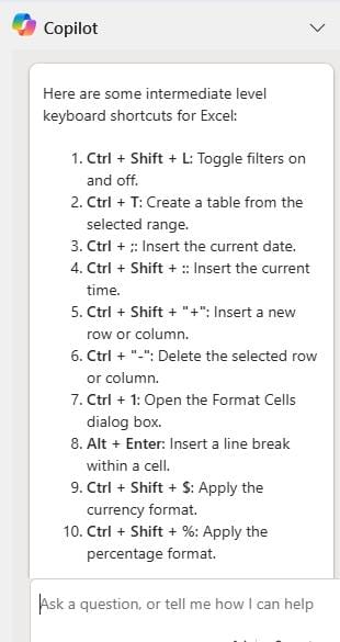 Copilot in Excel - Ask Copilot Questions about Keyboard Shortcuts, Functions, and Steps