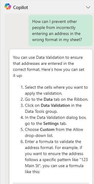 Ensuring data accuracy is crucial, especially when dealing with addresses. Data validation in Excel is an excellent tool for this purpose, and Copilot makes it even easier to implement.
