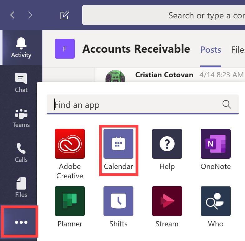 1. Click the **Calendar** on the left menu. if you don't see Calendar, click More added apps and then click Calendar.