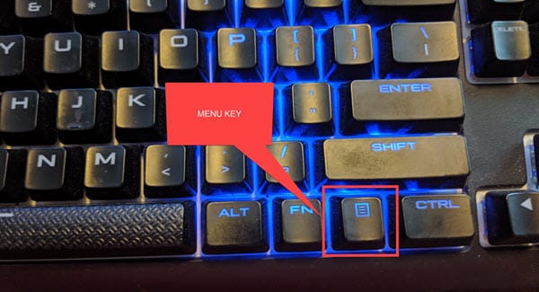 - Menu key + V - the Menu key is to the right of the spacebar. Note: not all keyboards have a menu key.
