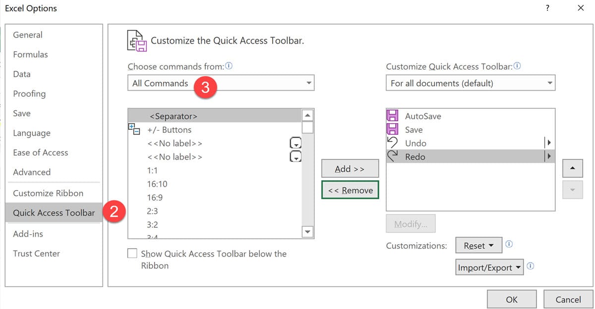 - Click Quick Access Toolbar.