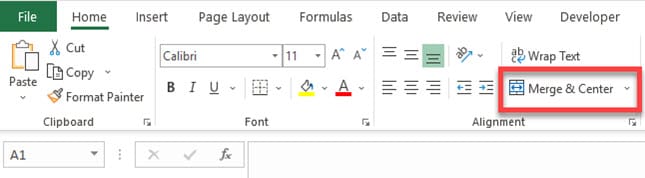 1. **Select All** the cells on the worksheet. 2. Click the **Merge & Center** down arrow. 3. Select **Unmerge Cells.**