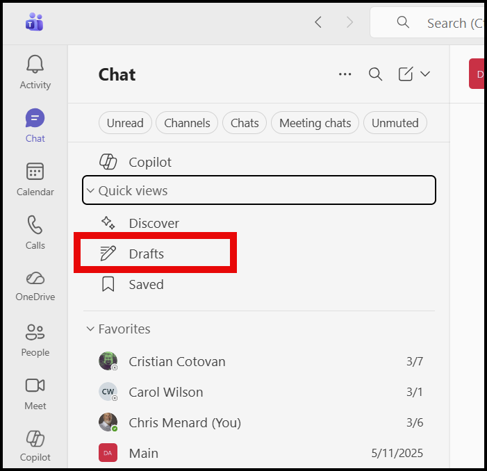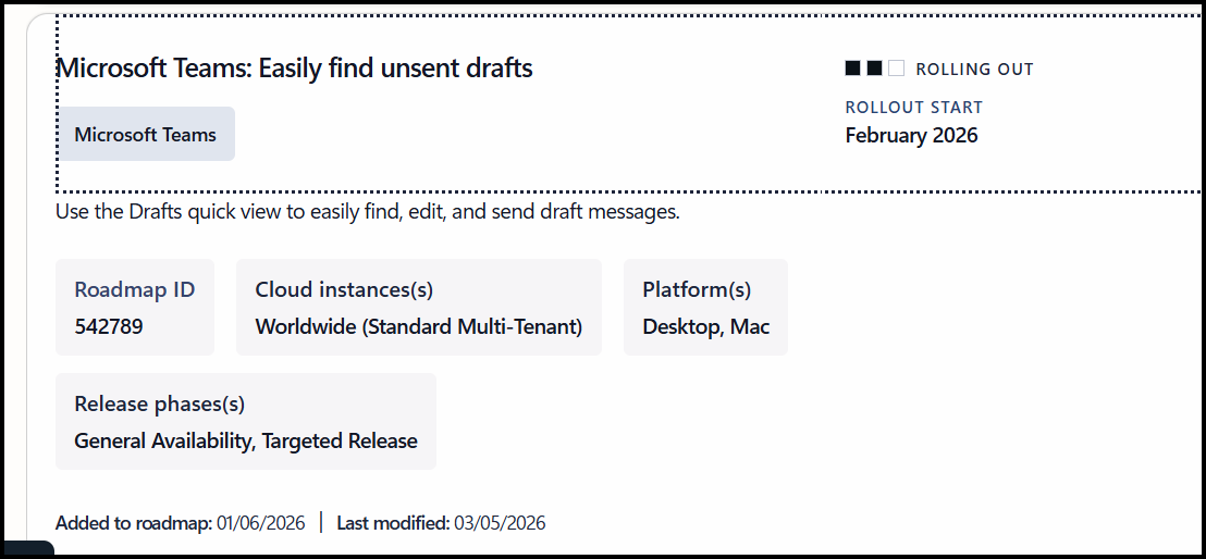 A new Drafts quick view in Microsoft Teams is rolling out that makes it easy to find, finish, and send unsent messages, all from one place. This small change solves a surprisingly big productivity problem.