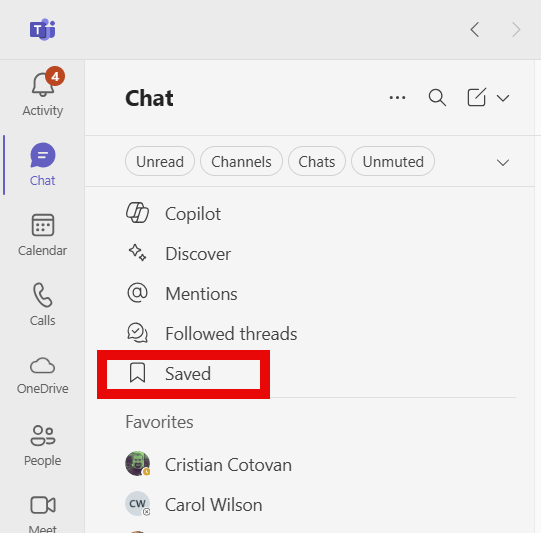 Where to find your saved items and how to Save Teams Chat and Channel Messages view