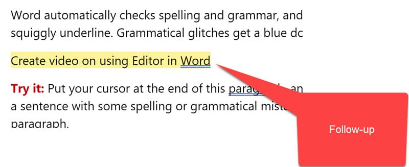 [Word support article on Follow-ups](https://support.microsoft.com/en-us/office/stay-in-the-flow-with-follow-ups-and-mentions-698bba10-d03c-461c-9ea8-7635cccc4fbb#:~:text=To%20start%20a%20follow%2Dup,to%20start%20a%20follow%2Dup.)