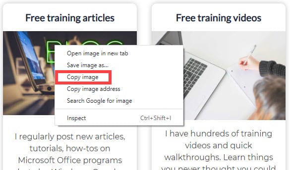 Method 2 - Find an image on the web, right-click the image, and select Copy image.