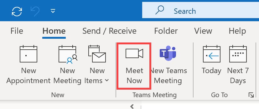 Meet Now in Outlook for Teams