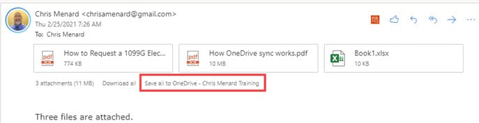 A great feature is when you receive an email with attachments, you can Save all the attachments at once to OneDrive! I love OneDrive, and this is an easy way to get my files quickly into OneDrive.