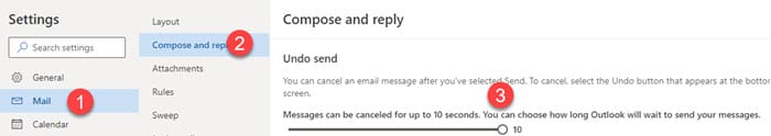 To use Undo Send, you have to turn it on in Setting. The setting icon is the gear icon in the top right, or use the steps below under Setting search! Undo Send is located under **Mail**\- **Compose and reply**, and you can change the time to either 5 seconds or 10 seconds. Zero seconds is the default. After changing the time, when you click Send, the email will only go out after the seconds you picked.