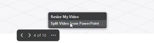 - You can Share a PowerPoint presentation as a Virtual background in your meeting - I recommend you close all the PPT files except the one you want to share - You can use the meeting controls or keys to manage your slides live - You can resize and move your video during the presentation - You can hide your image and bring it back over the presentation using the Split and Merge controls - You can record locally both as a host or guest