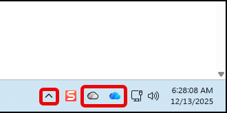 I have the OneDrive blue icon on my taskbar. The blue icon is for OneDrive for Work or School, and the white icon is OneDrive personal or family — but if it isn’t visible there, check the system tray up arrow. onedrive.com, The OneDrive Recycle Bin lives online.
