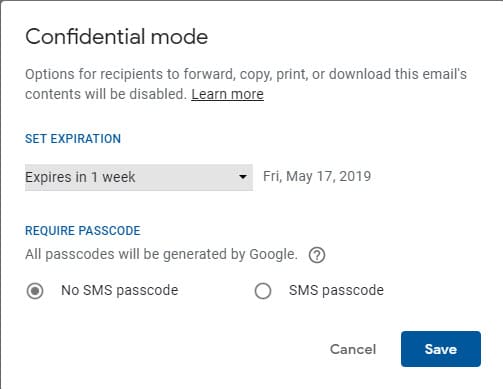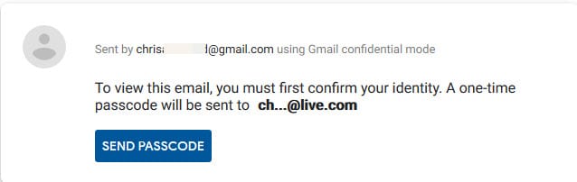 No SMS passcode," recipients using the Gmail app will be able to open it directly. Recipients who don't use Gmail will get emailed a passcode.Make sure you remind non-Gmail users to check their spam folder.