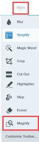 **Step 1 -** Go to the top header **Tools Bar**, click on **More** and choose **Magnify** from the drop-down menu.