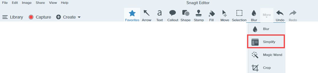 Right after you choose the capture area, you will be automatically brought into the **Snagit Editor,** where you have all the tools you need to process and edit your captured image. The Editor is where you will find the **Simplify button.** Snagit 2021 has _two_ parts the Capture window and the Snagit Editor.
