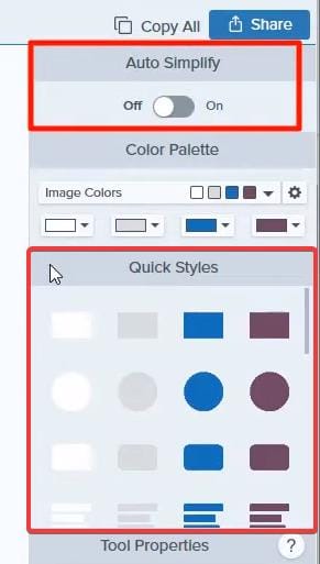**Step 3** - You can see in the top right corner that there is the **Auto Simplify** panel, and by default, it is **Off**. You can leave it as it is and manually choose between those different styles below.