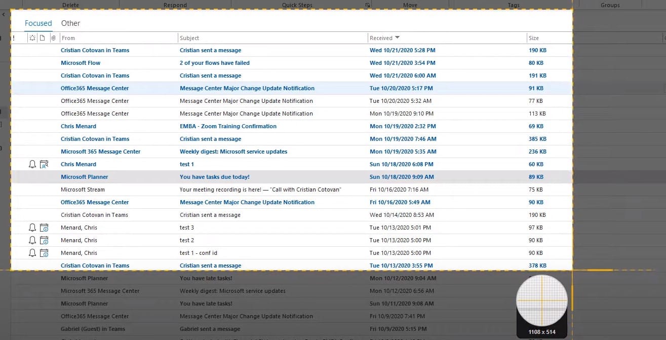 I will work with Outlook, and I want to capture a screenshot of my inbox, and show one of my emails, but I don't wish to blur all the other emails. This is a great example of when to use Simplify. Blur would work, but in this case, I prefer Simplify.