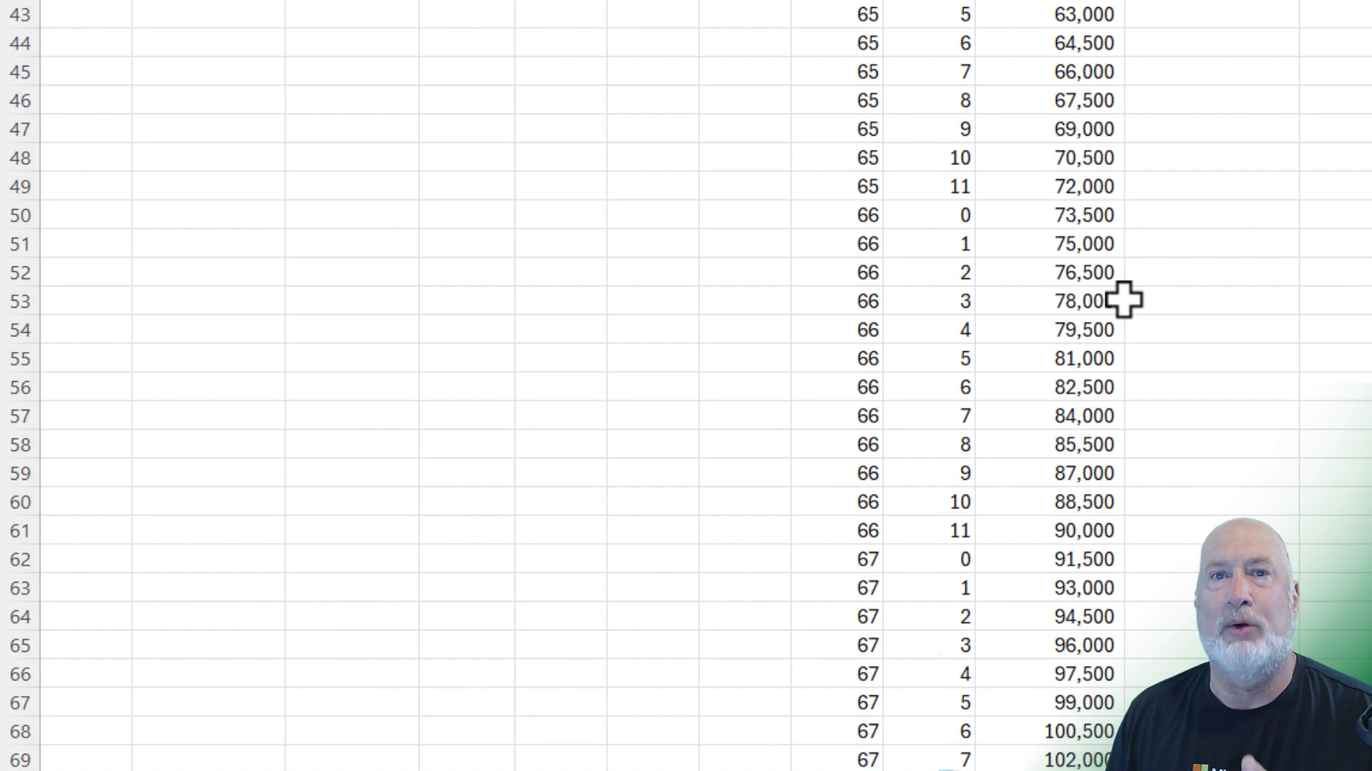 I'm using 62 and 67, but this would work for any retirement age. For example, you could compare retiring at 64 vs. 66.