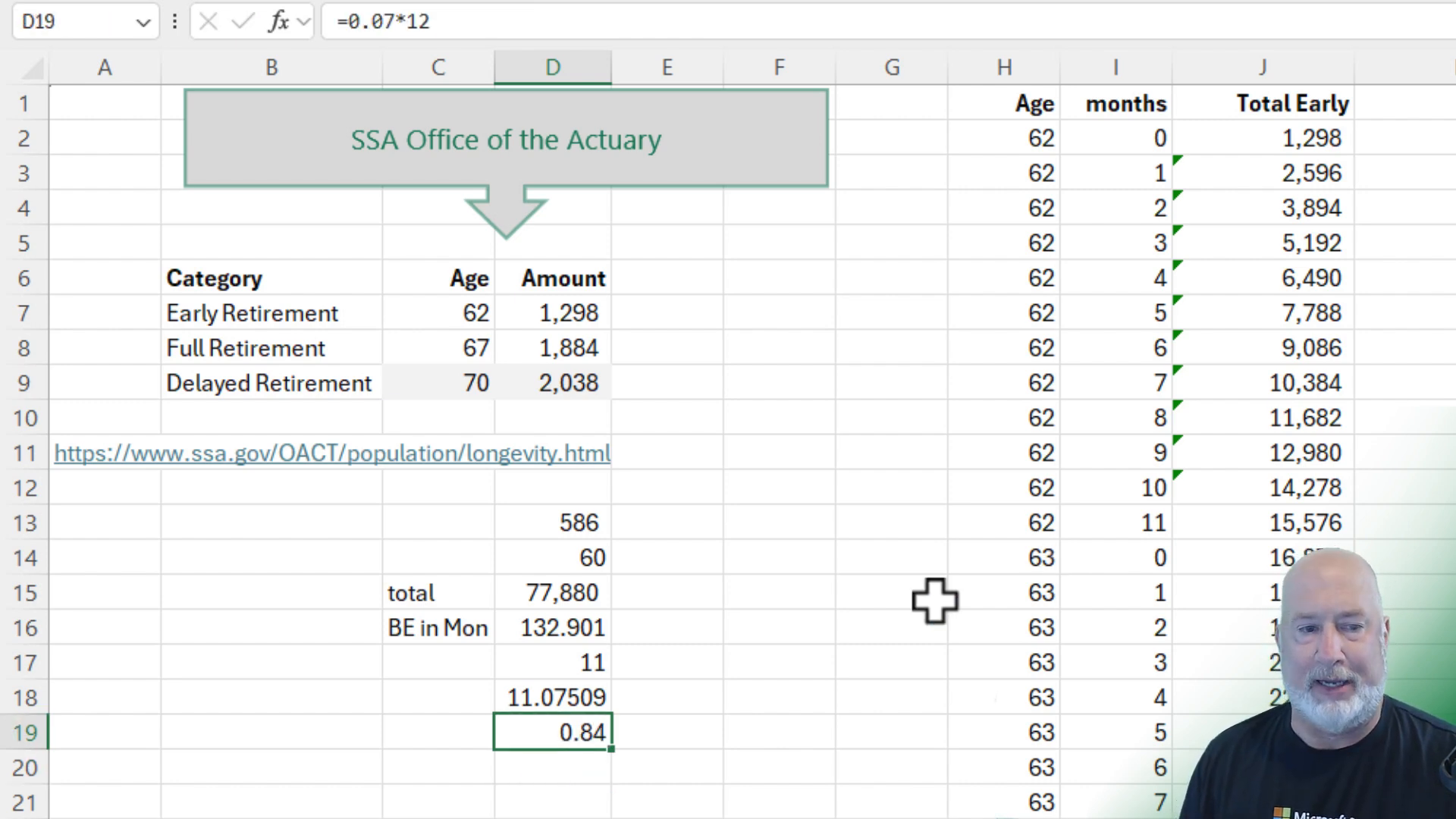 This means the breakeven point is around 19.6 years after age 67, or roughly at age 86.6.