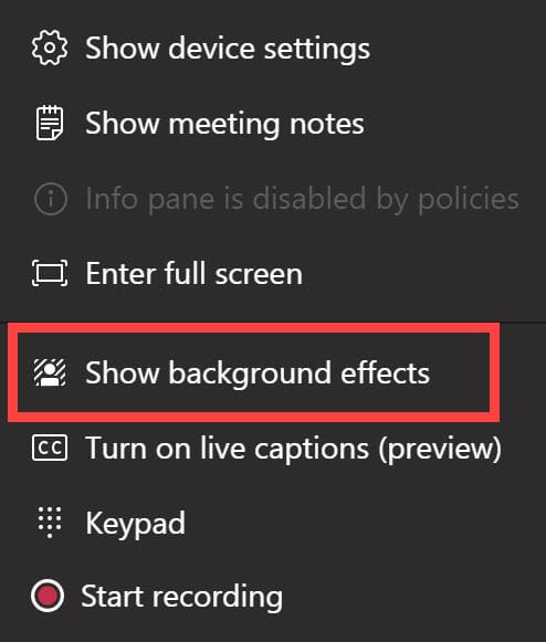 3. Click Show Background Effects
