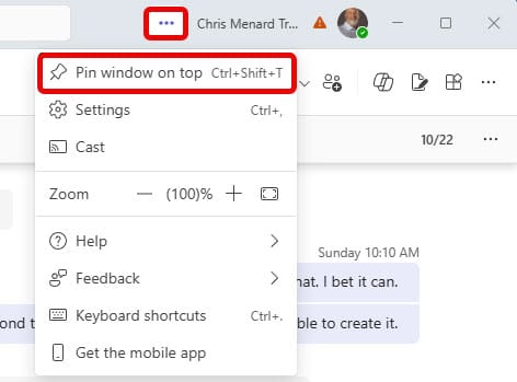 📌 Pin Teams on top of other apps
