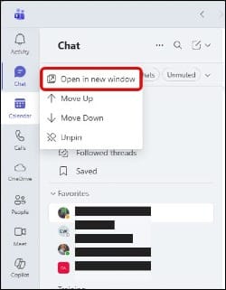 - Right-click Chat in the sidebar and open it in a new window on my left monitor so I can respond quickly without interrupting my main workspace.
