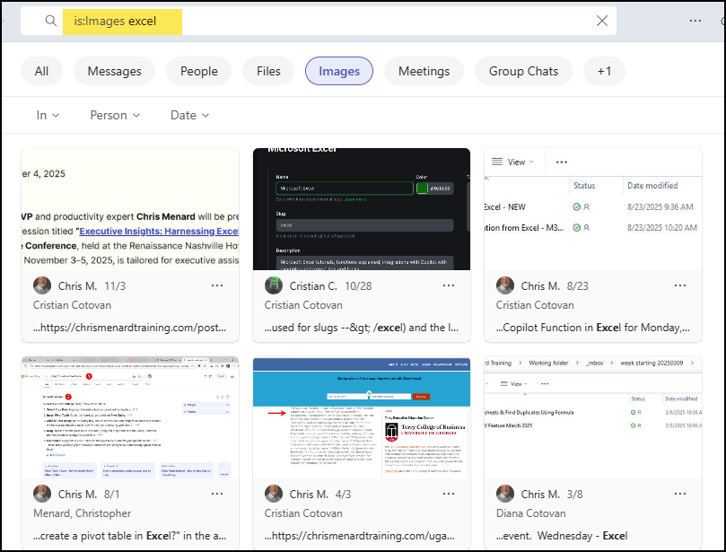 These features reduce context switching. When an image is needed from a conversation, I use the Images search filter and quickly find the file rather than scrolling through message history. Teams: Three New Features in December 2025 make that look effortless.