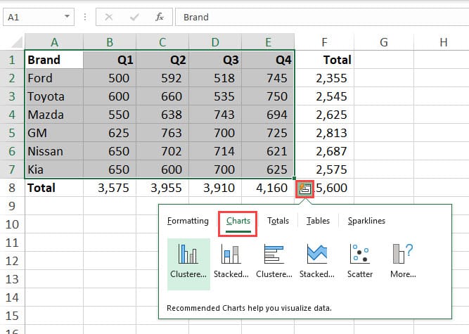 Charts in Microsoft Excel are easy. This short video shows three tips for creating charts. I'll cover two keyboard shortcuts for making charts, using Recommend Charts, and creating charts using Quick Analysis.