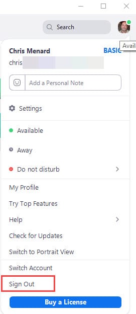 4. Back in the Zoom app, **sign out** of Zoom. Don't just close the app, you need to sign out.