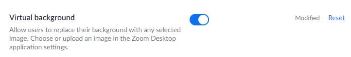 3. Under In Meeting (Advanced) **turn Virtual Background on**.