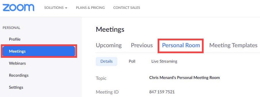 Access your Zoom Personal Room